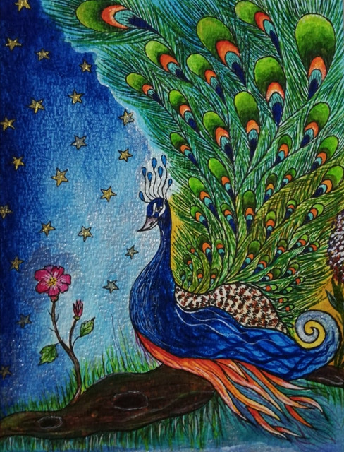 Amazing painting, I love the colors you've used. And the peacock just looks so real ^^