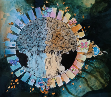 #tree #matsya #art #fairies #fairy #folktales #illustration #ink #landscape #magical #nature #oracle #tarot #treeslandscape #watercolor #treesforest