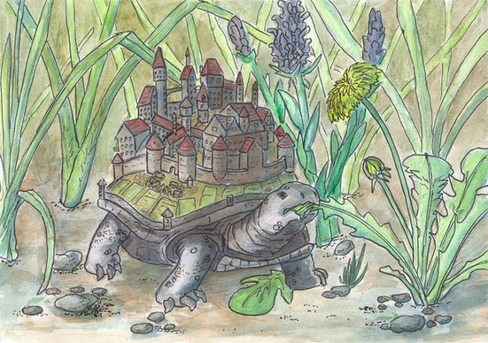 #beach #tower #matsya #castle #castles #conceptart #fantasyart #fantasyillustration #landscape #turtle #turtleshell #turtoise #watercolor #whimsical #medievalcastle #castlefantasy #whimsicalart
