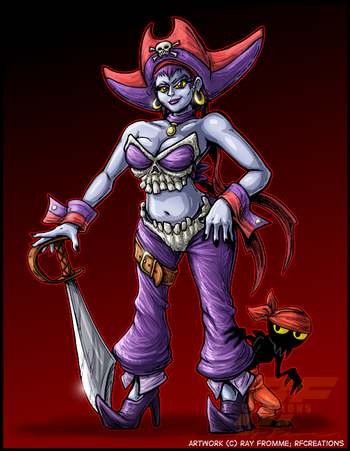 -According to what I investigated, she is Risky Boots, a character from a game called Shantae.