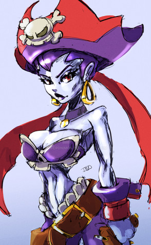 I feel so happy seeing an origional art peice done for Risky. I loved shantae, and Risky and her nutty tinkerbats were some of my favorite videogame villians. I'm explodeing in awe in the presence of your amazing, and the fact that you were behind one of my favorite GBC games ever! I want to draw Risky and...well everyone from that game now darn ya!