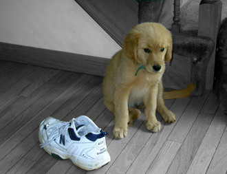 Puppies eat shoes, no matter how bad they smell.
