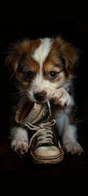 If I had a dollar for every time my dog chewed on my shoes... Great job at capturing puppies in their element.