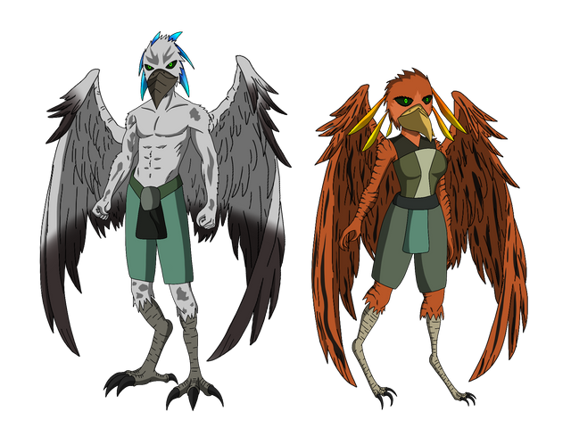 (Italian only. I apologize, I'm lazy today)Ammetto che mi ero scordato dei Rakkor. una razzi di oltremondo di umanoidi aviano. le ispirazioni principali oltre agli uccelli molto colorati del sud America sono, i dinosauri e le Arpie.