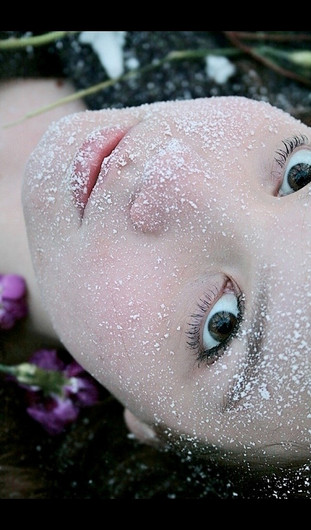 very beautiful photo and model, the snow on her face and in her hair add a very light, pure, and surreal look. ^^