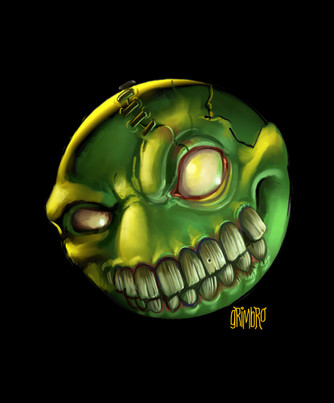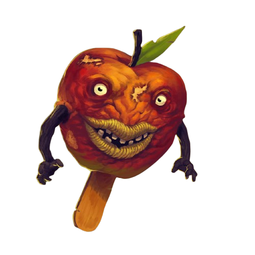Guaranteed to keep the doctor away! And everyone else for that matter.Just a little something for Hallowe'en, inspired equally by the tremendously excellent Death Note movies (and in particular the gleefully punky apple-obsessed death god Ryuk, from whom Bob gets his twisted toothy smile) and my long-standing inability to comprehend how the jolly children's game of apple-bobbing came to be associated with a holiday celebrating all things spooky, scary and generally shiversome. There's simply nothing that frightening about a red delicious.