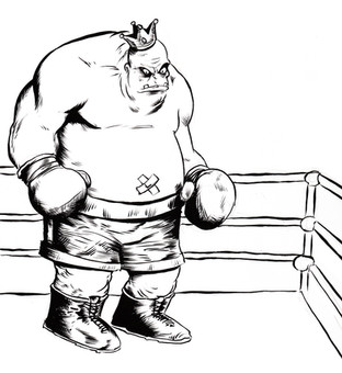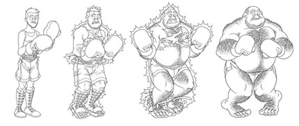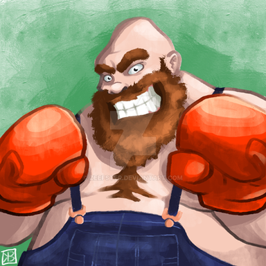 Beefy’s design changed barely at all between this concept drawing and the final commission piece – the only amendment was to his gloves, as you will see . I was aiming to emulate the style of the 2D character artwork created for the WII version of Punch-Out!, and I’m still really chuffed with how he turned out; I reckon he’d be a worthy addition to any future game in the series. Are you listening, Nintendo?