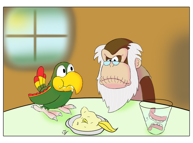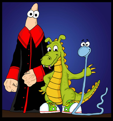 In English-speaking countries the show was known as Ox Tales, and the trio seen here were renamed Ollie the Ox (the hero of the piece, more or less), Jack Turtleson (his luckless best friend whose shell was smashed, stolen or otherwise rendered uninhabitable in practically every episode) and The Toucan, whose marvellously sardonic narration punctuated just about every scene. They were a spiffingly entertaining bunch (and they still are - do a search for Ox Tales on YouTube and see for yourselves. Just try to ignore the laughing mole), and this illo is a homage to their chucklesome grooviness.