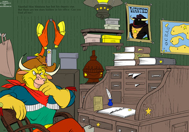 I was inspired to create this picture by an utterly brilliant bloke by the on-line name of MarkOut, who runs an Ox Tales tribute blog full of pictures and interesting info about the show and the comic that inspired it. (You can find it here: [link] and you really ought to give it a read.) Earlier in the year he very kindly made it possible for me to watch a whole bunch of episodes that I hadn't seen in years, and I thought it'd be nice to create some pictures of the characters with which he could decorate his blog (and the Ox Tales website that he's hoping to set up). This one here will hopefully be the first of several, so watch out for more ox-related antics in the not-too-distant future!