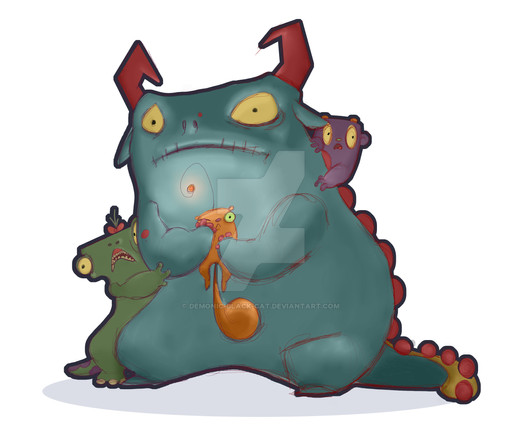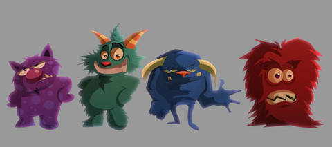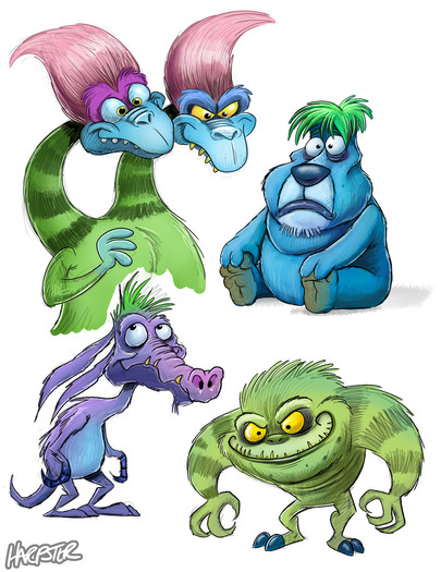 just some monsters i doodled lol i like the purple one best he has a cows hipsRelated content