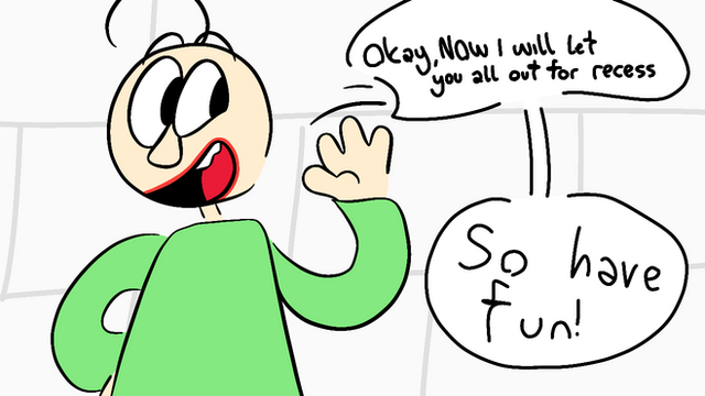(Drawn in April 1, 2024)After 6 years, I finally got a chance to draw the funny bald teacher since his popularity rose once again not only in animated memes, but also a new update with Baldi’s Basics +. Originally, I used to have a HUGE Baldi phase back in 2018 with a comic that I haven’t even finished, but I haven’t gotten a chance to finish the rest because I was lazy to do so, but I did drew Matt getting a grip onto the Gotta Sweep character around July.