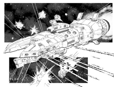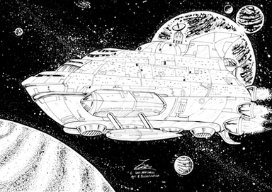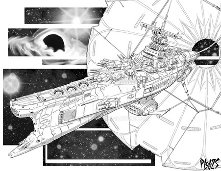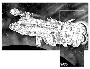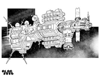 Early EARLY star league exploratory jumpship. Β Not much in the way of weaponry, old style sail reefing setup, old style docking collar, and massive spinning G-section.Wacom and PS over sketch.