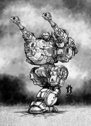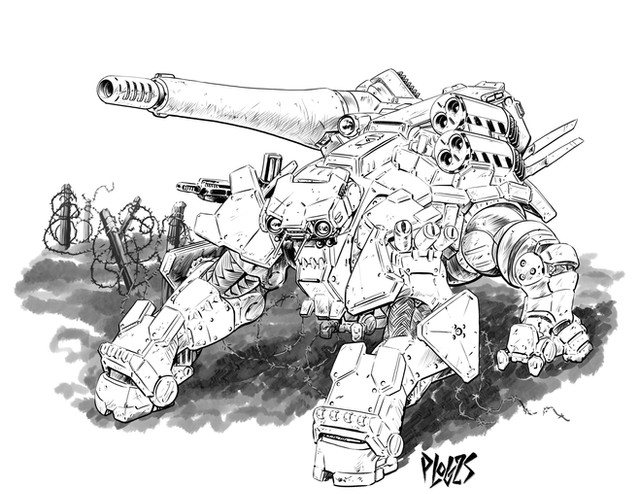 #mecha #digitalart #scifi #characterdesign #robot #military #battletech #canon #cityscape #contrails #giantrobot #gun #mechwarrior #plog #tripod #mattplog