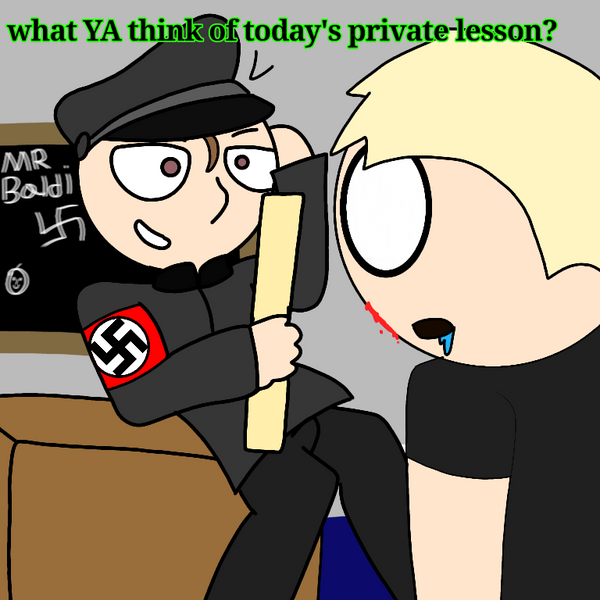 I've been getting a lot of comments fan and notes of people asking if I'm an actual National Socialist... But actually I'm not I just say that as a joke for shock value, and if you think about it my art is no better than South Park itself it's intentionally a little offencive and the conflict I guess is pretty accurate to people that haven't seen South Park... I never supported Hitler just my one of my personas does because I have multiple versions of my character... And me and my friend thought making a Hitler supporting version of one of my personas would be funny and it was funny for a while until family members and other existing beings got Triggered.What Hitler is actually a very bad person and if Resurrection exists he should stay dead. He deserves to stay dead... But to be honest there actually is a World War II related fandom and it's not support at all it's more like just admiring the topic but not in a saluting way... I used to be a troll but I was like 11 years old that was going through some tragic hormones and it was on crazy medication that made me go nuts... Or I could say I became Kyle but a less absurd version. There's actually a lot of deviantART groups that are in the World War II fandom but it's only an adequate interest ... Sorry people reading this/following me because you support Hitler if you do whatever floats your boat but it's truly sad that you think those things...