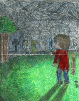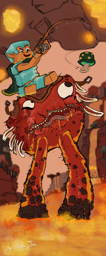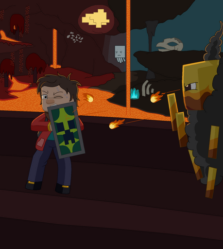New art! This took quite a while to draw, but I'm proud regardless!Update: Fixed the outline of the nearest Ghast.