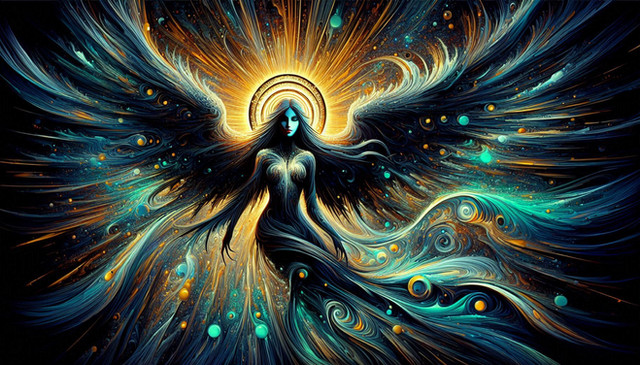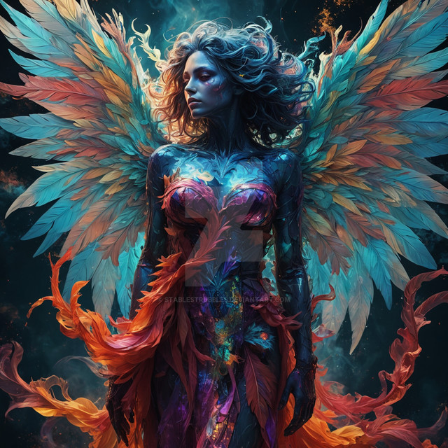 #ai #angel #angelwings #beautifulangel #black #color #colorfulart #fantasy #fantasyart #girl #guardianangel #wings #aiart #aiartwork