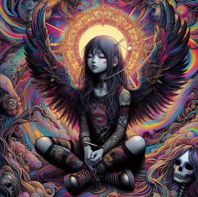 #ai #artwork #candles #colorful #colorfulart #death #esoteric #ghost #girl #god #heaven #life #magic #planets #psychedelic #rebirth #skull #sky #soul #spirit #spiritual #symbols #trance #wings #wizard #aiart #art #aiartwork #spirituality