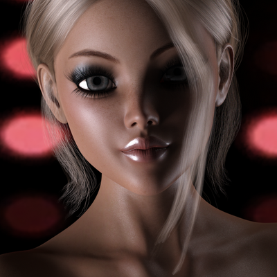 This is very nice though I have a few points to make. The light coming down her face is very sharp. It's ruining the nose a bit because it's creating shapes on her face that don't belong. above her mouth you ca see some dark smudges and it makes her look like shes got a bit of a mustache. you also have a very sharp line rather than a curve from where her mouth curves to her nose. You also have some issues with the hair colour. The eyelashes, hair and eyebrows are 3 different colors, which makes this image look a bit odd. The light color of the hair also clashes with her skin tone which now looks very dark and red, consider lightening it a bit.
