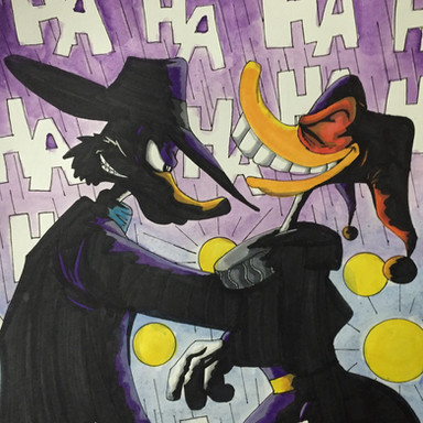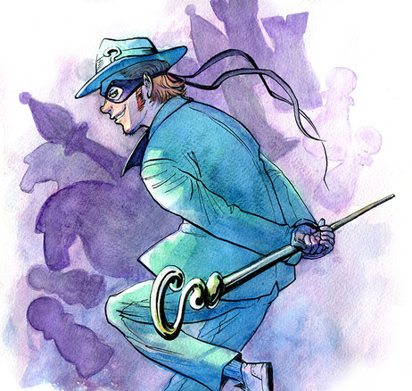 Drawing of the classic Frank Gorshin Riddler from the 60s Batman TV show. Done as a birthday girft for a friend.Pencil, Ink, watercolor paint.