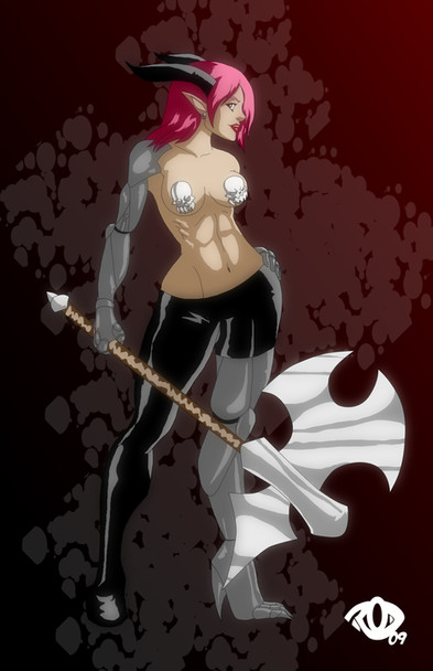 She's half Tiefling, half Warforged and yet she has plenty of squishy bits.Commission.