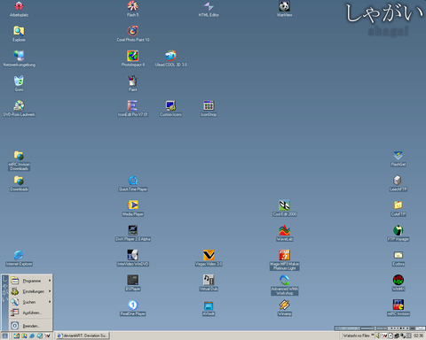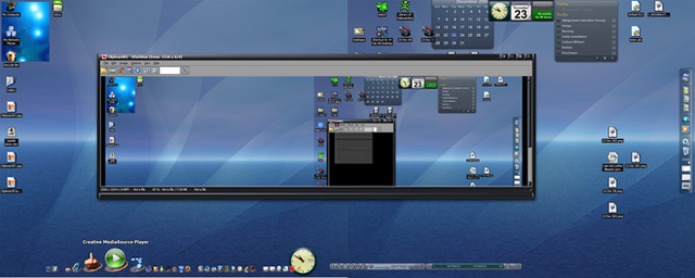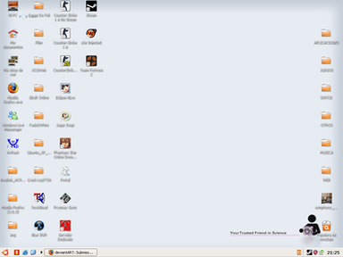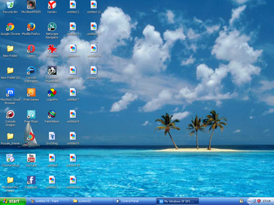 When I am working that's basically how my desktop looks.Starting from the sole desktop, on the left of it there are lately downloaded files. In the middle are put more system icons, wherein on the right usually programs reside.