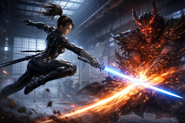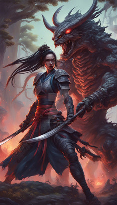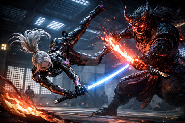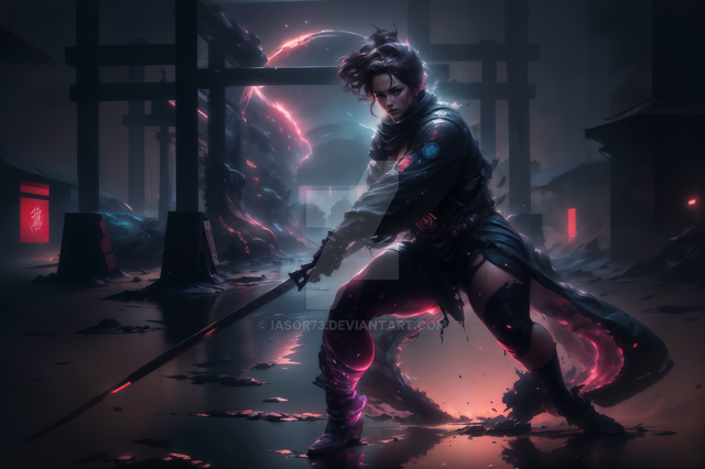 #adoptables #ai #beauty #digitalart #ninja #swords #character_design #warrior_women #sexy_girls #closed_species #magic_realms