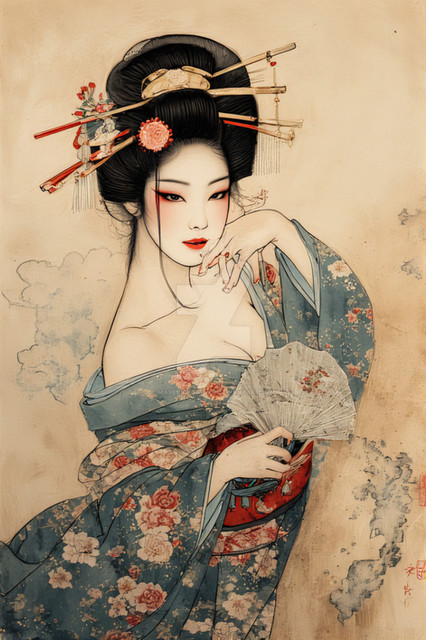 #portrait #beauty #kimono #digitalart #digitalpainting #fantasyart #glamour #dress #ancient #adoptables #ai #geisha #character_design #warrior_women #sexy_girls #closed_species #magic_realms