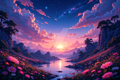 #digitalart #anime #wallpaper #sky #digitalpainting #epic #reflection #beauty #surreal #heaven #adoptables #ai #mountain #scenery #character_design #magic_realms