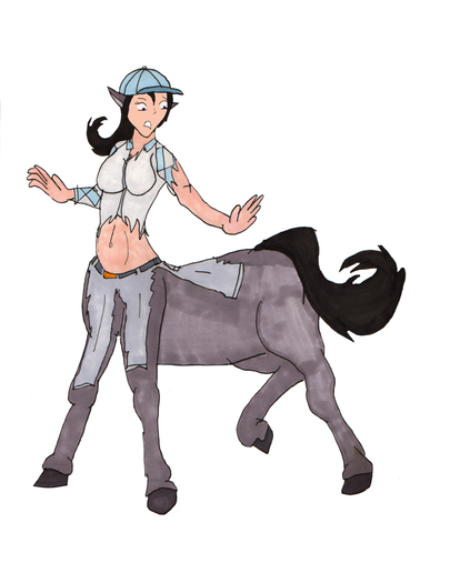 Just drew a humantaur for no reason other than the fact that they're cool. Although I find it weird why we call them humantaurs. It makes sense at first, and then you realize that "taur" is Greek for "bull", so whenever you refer to them as "humantaurs", you're essentially calling them human bulls. Maybe we should call them "human centaurs" instead. But that would probably eventually be shortened back to "humantaur" anyways.I'm not very experienced with drawing legs and feet, so maybe the idea of drawing a human centaur was a bit courageous. Oh well, I guess this counts as practice then.