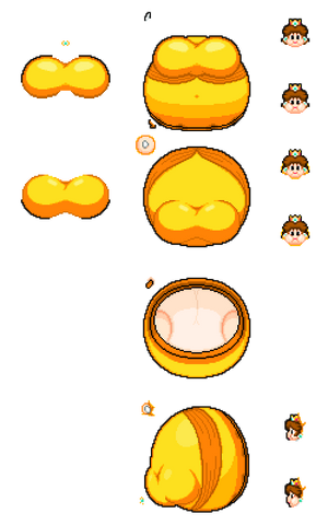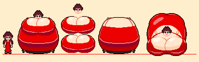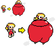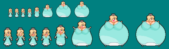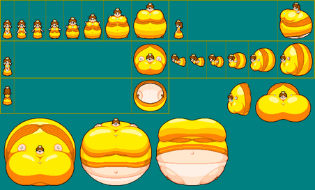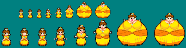 Well, these took way longer to make than I thought they would... That said, I think I did a good job here. I added a second set of sprites this time, where Pauline's dress isn't able stretch over her expanding body, exposing part of her ballooning boobs and her blimp of a belly. Anyone is free to use my sprites as long as they give credit.