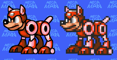 Rush (ラッシュ Rasshu) is Mega Man's faithful robotic dog, created by Dr. Light to assist Mega Man in his travels. He debuted in Mega Man 3. Initially, Rush was able to transform into a coil, a hoverboard, and a submarine. Since then, Rush appeared in most games related to the original Mega Man series, including crossovers like Marvel vs. Capcom and some cameo appearances like SNK vs. Capcom: Card Fighters' Clash, Super Gem Fighter: Mini Mix and Capcom World 2.In Mega Man 6, he was upgraded and gained the ability to fuse with Mega Man to form the Power and Jet suits. In Mega Man 7, his jet and coil abilities returned, but he now had Rush Search, a detection mode. Also, both of his suit transformations were combined into one: the Super Adaptor. In Mega Man 8, he has four new abilities, including a transformation into a motorcycle and healing abilities.