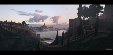 Love it! the bridge, the religious, cathedral-like feel of the castle...it brings to mind more mature fantasy like Lord of the Rings rather than "unicorns and rainbows". Very well done!