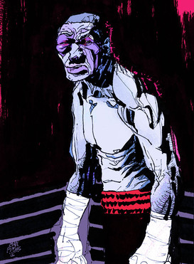 When I started exploring this style of drawing, my first impulse was to attack a subject that deeply interesetd me. Boxing has been a constant presence in my life since I first laced up gloves (well, velcro'd up gloves) back in 2008.This piece was an early experiment in merging old ways with new, and adding color to the mix.