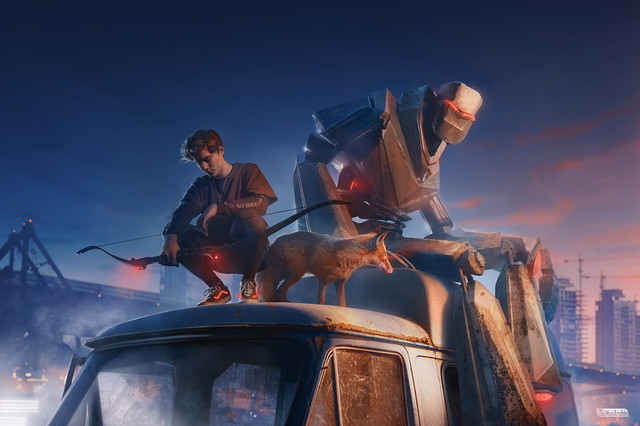 Digital art done in a mixed style, using 3D, photomanipulation and hand drawing.