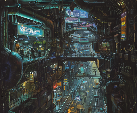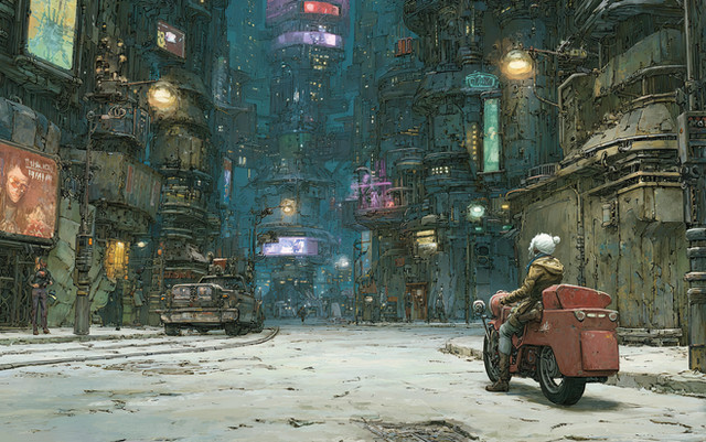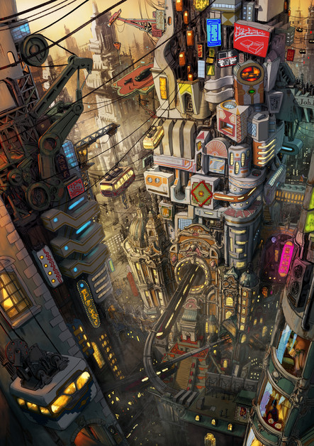 Like this one below, which is gorgeous, no doubt about it, but feels like it's cornered in a box, with the weather/clouds being the walls of the box. What I think I'm having "problems" with, is that beyond what I'm seeing here, there's nothing behind it, diminishing the suggestion that these are a big, huge cities. Can be of course intentional, your way of presenting things, but I cannot escape the feeling that with all these marvelous details, something is "missing".
