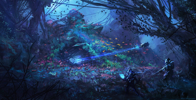 This is absolutely stunning! I've seen landscapes not unlike this on my travels, but everything here flows together so perfectly it could only be something from a dream (If you happen to have played Chrono Cross, I suppose it reminds me Water Dragon Isle a little bit too). Would you be okay with it if I made an ink painting out of this?