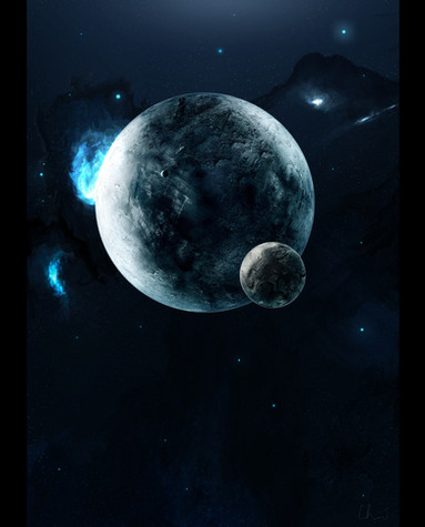 I've seen some pieces with this setting, but in space art you really need to be extremely creative to invent some original settings for the planets. There is simply not so much option. There is no perspective in space art. You only create a background and add a planet or two somewhere, add moons and that's it for the setting. Maybe rings or asteroids can help out, but there is not so much connection between the major objects of the piece, making an original setting very difficult.