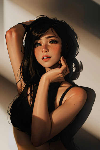 #ai #arroused #beautifullips #blackhair #bra #sexy #whitedress #lacedress #narrowedeyes #simplebackground #teasing #seethroughclothes #stablediffusion