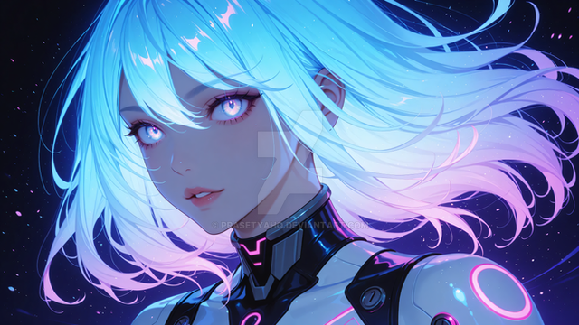 #ai #blondehair #blueeyes #colors #light #neon #sparks #stablediffusion