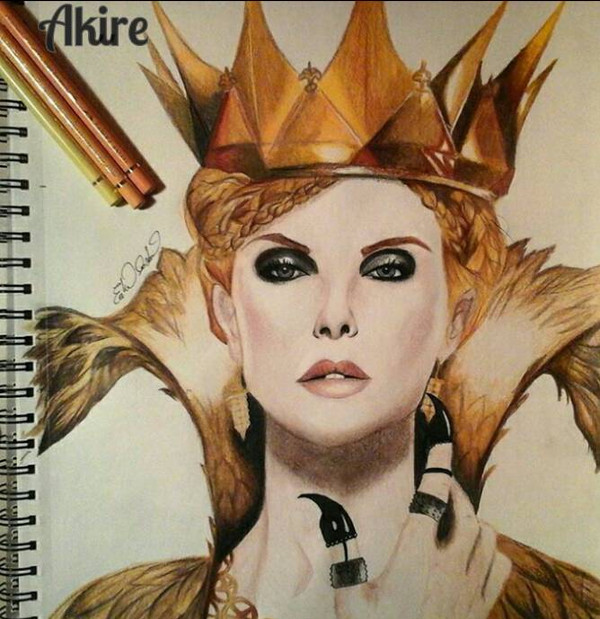 Je suis allée au cinéma voir le film "le chasseur et la Reine de glace" au début du mois, et j'ai craqué! J'avais déjà eu une folle envie de dessiné la maléfique Ravenna après le premier film, mais je n'avais pas le niveau ni le courage! Pour ceux qui n'ont pas vue "Blanche-neige et le chasseur" je vous le conseille, juste pour le rôle absolument sublime de Charlize Theron.