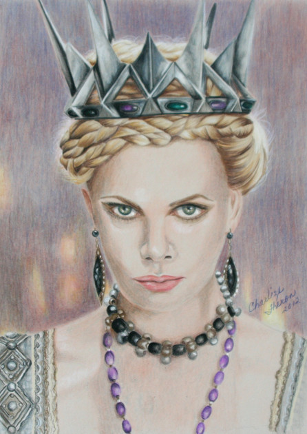 Je suis allée au cinéma voir le film "le chasseur et la Reine de glace" au début du mois, et j'ai craqué! J'avais déjà eu une folle envie de dessiné la maléfique Ravenna après le premier film, mais je n'avais pas le niveau ni le courage! Pour ceux qui n'ont pas vue "Blanche-neige et le chasseur" je vous le conseille, juste pour le rôle absolument sublime de Charlize Theron.