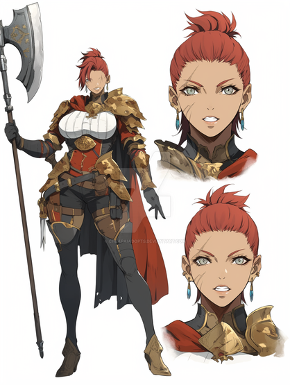 #anime #warrior #redhair #animedrawing #characterdesign #fantasycharacter #animemanga #beast #beastman #characterart #characterconcept #charactersheet #digitalartwork #monstergirl #adoptableopen #adoptadoptable #adoptableauction #aiadopt