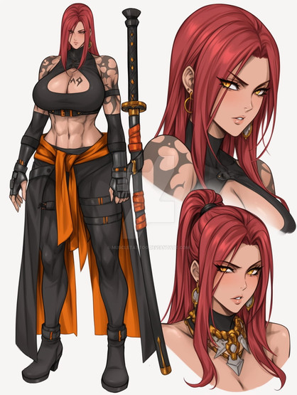 #anime #characterdesign #warrior #fighter #redhair #assassin #animedrawing #fantasycharacter #characterconcept #animemanga #beast #beastman #characterart #charactersheet #digitalartwork #monstergirl #adoptableopen #adoptadoptable #adoptableauction #aiadopt