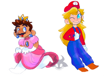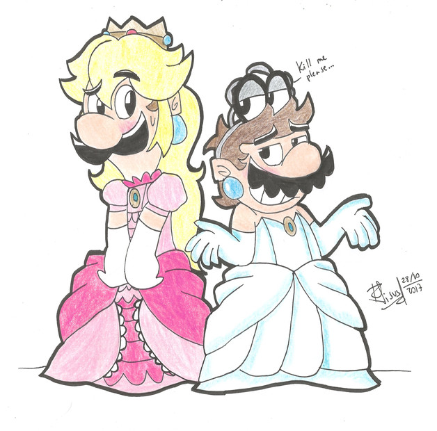 Look,,, these two look great in dresses. This has been proven in canon, so I will draw them in their own dresses if I want to.I feel like I should probably apologize for the super bright colours, tho