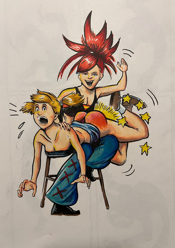 #cartoon #originalcharacter #bluehair #braid #comic #curlyhair #fishnets #freckles #lingerie #overalls #redhair #thighhighs #underwear #seethroughlingerie