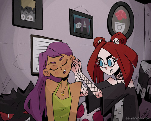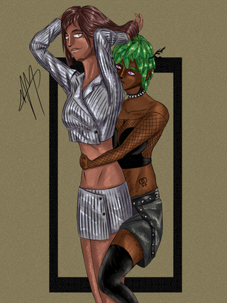 #digitalart #originalcharacter #bluehair #braid #lingerie #overalls #punkgirl #redhair #buttslap #seethroughlingerie #officefantasy