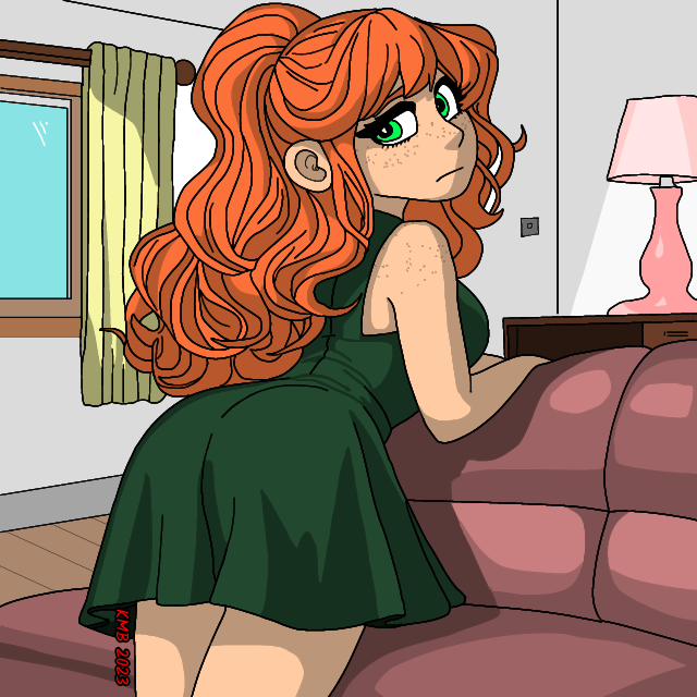 #digitalart #originalcharacter #comic #redhair #freckles #greeneyes #office #seethroughlingerie #officefantasy