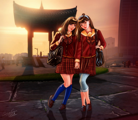 This is my entry into the Yuri club's spring contest.I used a slightly different style for the faces, which I think looks better...