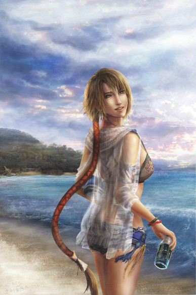 Yuna just...enjoying some sun and surf~ heh heh~I was working on commissions and then distraction and then...Yuna.