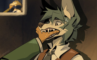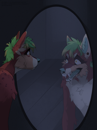 imagine waking up in the middle of the night and realizing that you woke up in a room that is not yours and in a house that is not yours and when you go to see yourself in the bathroom mirror you realize that you are a brown anthropomorphic wolf with green eyesRelated content